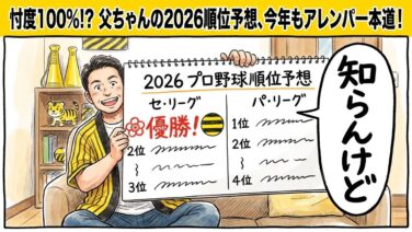 2026年プロ野球開幕!阪神タイガース対読売ジャイアンツの開幕戦を徹底分析。村上頌樹投手の2年連続大役、新人・岡城快生選手の1軍入り、そして父ちゃんのガチ(?)順位予想まで。アレンパを目指す虎党必見の記事です!