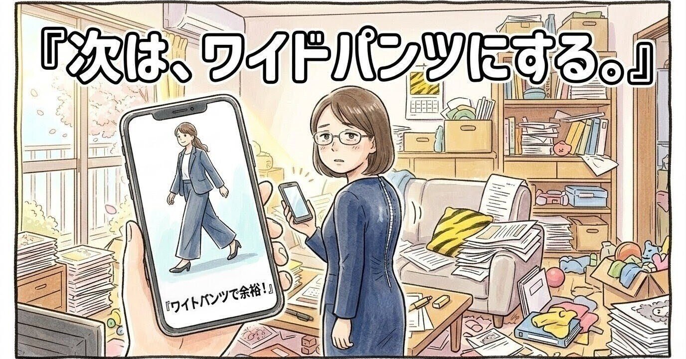 それとも、先ほどウィッシュリストに入れた、あの包容力あふれる「ワイドパンツタイプのスーツ」に、敗北を認めて(あるいは戦略的撤退をして)買い換えるのか。
