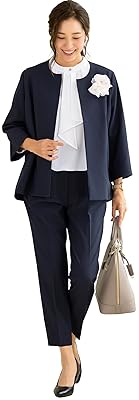 🌸パッツパツの不安から解放される、ゆとりあるシルエットが最大の魅力。体型を拾わず美しく見せるワイドパンツは、動きやすさも抜群です。自宅で洗えるので、忙しい卒入園シーズンでも気負わず着回せる心強い一着です。